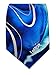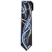 Men's self-tie neck tie featuring art deco graphics of swirling silver and black lines on top of strokes of light blue, dark blue, dark grey, and black background