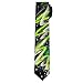 Jerry Garcia men's art-in-neckwear neck tie features colorful patterned green shamrocks with shimmering silver outlines, and beautiful diamond-like shaped sketches of black lines and swirls, and hints of white, over a green background. Artwork entitled Plant Person Collection 61. Part of the Saint Patrick's Day Collection.