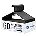 Premium Black Hangers - Comes in a pack of 60, hangers measuring at: 16" L x 8" W and 1/4" thickness. Conveniently hang and organize all your clothes on your closet rack or in storage space. These hangers are great for women, men and kids. They can hang any type of shirts, skirts, trousers, jeans, shorts, sweaters, coats,etc.