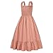 Styles and Features: Fit and Flare A-line Silhouette, Casual Cute Dress, Sleeveless, Elastic and Pleated at Waist,Good stitching and well made, durable,nice sewing and the fabric is polyester and cotton.It touch soft, comfortable to wear