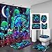 【Premium Material】Mushroom shower curtains for bathroom sets is made of 100% Polyester fabric, the bathroom mat and u type rug are made of flannel, which is comfy, non-toxic and colorfast, skin soft, waterproof and durable