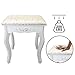 【Vanity Set with Cushioned Stool】: With engineered wood tabletop and solid beech wood legs, the vanity set is sturdy and durable. It also comes with a soft cushioned stool that allows you to sit comfortably when makeup. The vanity bench can hold up to 250 pounds.