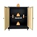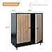 STURDY & DURABLE - This metal storage cabinet is entirely made of powder coated steel with reinforced construction which makes the cabinet extremely solid and sturdy. The two metal doors in wood look are designed with vents to increase air ventilation and keep your stuff dry
