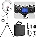 【PACKAGE INCLUDES】:Inside of your package, you will receive: LED Ring Light Body (18 in / 46cm) x1, Tripod (20-75 in / 50-190 cm) x1, Wireless Remoter x1, Phone Holder x1, Hot shoe adapter x1, Power Adapter x1, Durable Carry Bag x1 and Instruction manual x1