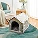 【Waterproof Cat House】: Made of durable waterproof Oxford cloth, this pet house is equipped with a front door to protect your pet from rain, sun, and snow. It's stylish and designed for all seasons, making sure your pet stays happy and healthy in any weather. It can be used in various locations such as rooms, gardens, porches, barns, streets, and garages.
