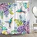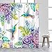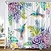 【Eye-catching Design】: Bring a touch of nature's beauty into your bathroom with our bird flower shower curtain featuring hummingbirds and succulents in vibrant shades of purple and turquoise.