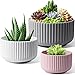 Design Story of These Pots for Succulents: Modern Minimalist Design, low bowl planter with vertical texture, simple and atmospheric, bring a touch of originality and modernity to your small plant pots. The colors combination of gray, white succulent pots and pink is inspired by Scandinavian style.