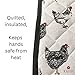 - Roast Chicken Hen Farm Print Oven Mitts And Pot Holders Sets Of 2,Contains 1 Insulated Gloves(7.2 X 11 In) And A Pot Holder(8 X 8 In). White and Black oven mitts and pot holders set with a touch of color