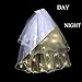 White wedding veil has two tiers,clip,lamp cord 2 meters,20 lamp beads,warm light and color light for your choice.Veil and the light are separate, so if you want to have a lighted veil at a wedding or go out for a day, it is a good choice. You can not use the light during the day and turn on the light at night.