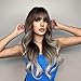 WIG STYLE: Full machine-made none lace wig, long wavy wig, middle part wig, ombre brown blonde color, natural-looking with bangs . Feel close to human hair, Very soft and natural which makes one confuse as the real hair.