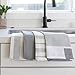 Modern Monochrome Patterns | Three grey tones coordinate across four complementary patterns on this set of towels. Grey matches every décor without overpowering other design elements in your kitchen.