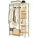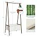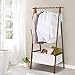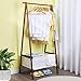 MINIMALIST CLOTHING RACK: This bamboo garment rack features by one top hanging rod and cloth storage bag; select high quality bamboo nice finished in brown color which gives you a retro feel, and cotton and linen storge bag makes it look more elegance