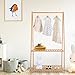 STURDY & DURABLE: Jotsport kids clothing rack made of high quality bamboo, fine polished and varnished porocessing ensure a sleek look, natural bamboo color well matches with any room decor and it is sturdy to hold kids dress up clothes, shoes and stuffs up to 50lbs