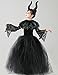 Package Included-- One Maleficent Costume Set (Girls Tulle Black Tutu Dress*1, Kids Feather Shawl*1, Maleficent Horns Headband*1, Lace Arm Sleeve*1)