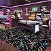 Fluorescent dyed rug glows under black light and is perfect for gaming and entertainment rooms