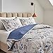Botanical Reversible Design- A side: Blue leaves printed on very light gray. B side: Quiet blue. A mellow color combination to make your bed look more luxury. The weight is neither too light nor too thick, making it ideal for use in all weather.