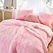 ✨SIMPLE & ELEGANT DESIGN- There are five colors available (gray&white, pink&white, khaki&white, teal&white, navy&white), the vintage farx fur comforter set makes cozy, luxury, elegant look. This bedding set is a perfect pick for this winter and gifting season!