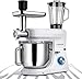 🎂 Tilt-Head Design and Easy to Clean: The tilt-head designs are easier to install or uninstall bowls and accessories easily for us, each stand up mixer will be matched with a 5.8QT 304 Food-grade stainless, Flat beater, Dough hook, Wire whisk, Spatula, Splashguard, Egg white separator. All of the attachments are dishwasher-safe.