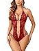 Designs: The ties behind the breast and neck help you easily adjust to how tight you want and how effects you want. Stretchy material and adjustable ties can get everyone perfect fit and comfy. Show your flattering curve perfectly. This lace lingerie bodysuit is a great choice to spice up your life.