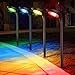 🥰🥰【9 Lighting Modes & 7 Color Displayed】JSOT Christmas decor lights outdoor Solar walkway lights are designed with 9 lighting modes:1-7 mode is fixed single color(Red,Green,Blue,Purple,Warm white,Cool white,Cyan),8 mode is 3 color cycling(Red,Green,Blue),9 mode is 7 color cycling.Greatly meet the various needs of customers.The solar garden lights not only suitable for daily lighting use,but also suitable for holiday,party,festival decoration,even ideal for birthday,Christmas,Halloween,Thanksgiving Day and Parent gift.