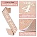 【Birthday Girl Sash for Kids】: Our Rose Gold 4th Birthday Sash Is Made of High Quality Glitter Fabric with Foil Lettering . The Sash is in 63 inch Length and Comes With A Gold Charm Safety Pin that You Can Easily Adjust The Length You Need.