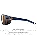 SPECTRON 4 LENS: Julbo’s darkest tint polycarbonate lens transmits only 5% of visible light and provides 100% UVA, B and C protection. Anti-reflective coating improves visual comfort. Flash/mirrored finish increases filtration of visible light. Recommended for sports with exposure to strong glare.