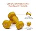Includes 2 yellow dumbbells, each weighing 8 pounds (16 pounds total)
