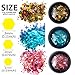 ✅ Variety of colors & shapes: Creative nail art set in different shapes & size - foil flakes, sheets and tinsels; also in different colors - golden, silver, copper, blue, green, red, glack, purple, holographic silver & rose gold etc. Each unique color is rich and vibrant. Will satisfied all needs. With different shapes and size, you don't need to rip the larger pieces apart to create smaller pieces. If you need special shapes & sizes, you can cut the larger sheet one to your preference.
