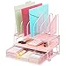 MODERN, SPACE SAVING DESIGN: Organization does not have to be difficult. Made of metal finished in rose gold and featuring a unique mesh design, this Vertical and Horizontal File and supplies organizer with drawer and letter sorter keeps things organized and saves space.