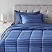 Includes a 7-piece Full/Queen set in Royal Blue Calvin Stripe with 86 x 90-inch comforter, 90 x 102-inch flat sheet, 60 x 80 x 12-inch fitted sheet, (2) 20 x 26-inch shams, and (2) 20 x 32-inch pillowcases