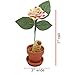 REAL COTTON BALLS adhered to a high quality silk rose, attached to a floral stem. Single rose is anchored in pebbles inside a terra cotta pot - 7" tall