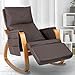 HIGH QUALITY MATERIALS: JXP rocking chair made of high luxury soft PU leather with solid wood. Classic brown color will match any home decoration.The chair pillow and back are with High rebound filling, This leather rocking chair will provide a more comfortable and soft experience.
