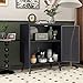 【Quality fabrics】This storage sideboard cabinet is made of engineered wood and steel legs for sturdiness and stability. An elevated metal base prevents moisture damage. This hutch cabinet features an anti-toppling design and can be fixed to the wall for safety.