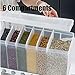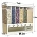 6-COMPARTMENTS CAPACITY: Each dispenser holds 1000ml or more grains. The 5 internal partitions can be moved at will.You could adjust the partitions to place anything of any size at will. 5 compartments for millet, black rice, corn, soybean, mung bean, red bean and other cereals, jelly beans, coffee beans and other small particles of food. (Not for oatmeal, cereal)