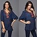 Half Sleeve,V neck,semi sheer,embroidered pattern,plastic beads,tunic shirt
