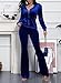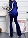 Features: solid color, fashion notched lape, deep v neckline, long sleeve, fake decorative pockets, slim fit blazer jacket with slit at back, wide leg flare long pants with no pockets, fitted women blazer suit set