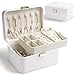 [Chic & Durable] Elegant cloud white color, shiny metal handles in a gold color, soft velvet lining, neat stitching, quality PU, and sturdy MDF—all these elements combined make this jewelry box stylish and durable enough for your ever-growing jewelry collection