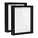 Design: Black 11x11 inch shadow box frame, perfect for creating and protecting your own display of memorabilia; outer dimensions of the frame are 12x12 inches; the glass panel has dimensions 11x11 inches, and the visible display area is 10.5x10.5 inches.
