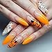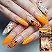 🎃【Package Contains】You will get 24 pieces of Hallowee press on nails with a pumpkin design. The package contains 1pcs nail glue,24pcs nail adhesive tabs, 1pcs nail file, and 1pcs wooden stick