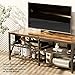 The size of the TV stand is 55.12*15.75*19.69'' /140*40*50(L*W*H CM) . Suitable for TVs from 32-65 inches. And the weight capacity is 150 pounds. Two levels of storage open space can be placed more items, and the grid design helps to ventilate and dissipate heat from overheated electronics such as cases and stereos. The single tier height is 9.85'' in, so you don't have to worry about overheating in tight spaces.