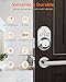HASSLE-FREE FIT: Universal latch slides easily into place without tools to fit standard doors with 2-3/8" or 2-3/4" backset; fits door thickness 1-3/8" to 1-7/8"; adjustable throughbolt slides for easy installation without drilling additional holes
