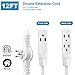 Dual 3-Outlet 12 foot Power Cord - - 2 Extension strip cords in one! 6 ft on each side. Power more devices, each side have 3 polarized outlets, expand 1 outlet into 6 outlets, connect up to 6 electronic devices, all grounded. Great for living room, bed room or anywhere you need extra outlets.