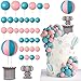 Package: One package contains 32 pcs colorful ball cake toppers in 2 colors, including blue and pink,1 pcs blue pink hot air balloon elephant cake decoration.