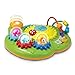 PRESS THE SQUEAKY CENTER FOR EVEN MORE FUN: A happy green caterpillar inside the squeaky center button keeps watch over brightly colored beads that spin and dance when pressed.