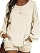❤【Feature】: Two piece Striped Knit loungwear lantern sleeve set for women fall and winter,scoop neck fashion design sweater soft lounge set pajamas, loose long sleeve tops and elastic waist band shorts with two pockets