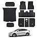 All-Weather Protection: Our Tesla Model Y floor mats full set are designed with raised edges to stop mud and dirt from getting into the side carpet areas and interior protection. Full Protection - Set of Floor Liner 1st & 2nd Rows & Front Rear Cargo Liner & Trunk Mats & Backrest Mats for Full Coverage - Total of 9 Mats.