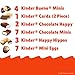 CHOCOLATE GIFT: Discover assorted, individually wrapped Kinder milk chocolate and crispy wafer treats; Kinder Happy Hippo, Kinder Bueno Minis, Kinder Chocolate Mini, Kinder Chocolate Happy, Kinder Cards and Kinder Mini Eggs