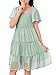 FEATURES: Girls summer casual dress,square neck,ruffle short sleeve,frilly smocked elastic front,stretchy frill top.A line midi dress,chiffon dresses,tulle dress,knee length,solid beige,pink,blue.Cute,casual,elegant style.With lined,not see through.