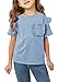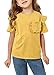 Design:Girls kids short ruffles sleeve t-shirt with crewneck, solid plain color,round neck,basic cotton tees, loose fit, soft and breathable fabric, casual and cute design, new style fashion shirts, short sleeve tops for girls