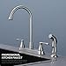 Easy to install- The kitchen faucet with sprayer comes with all the parts needed. A DIY installation for this water faucet can be finished within 20 minutes. You will be amazed at this super easy-installed stainless kitchen faucet. Deck plate included, one hole kitchen faucet or 3 hole kitchen faucet installation as you like.